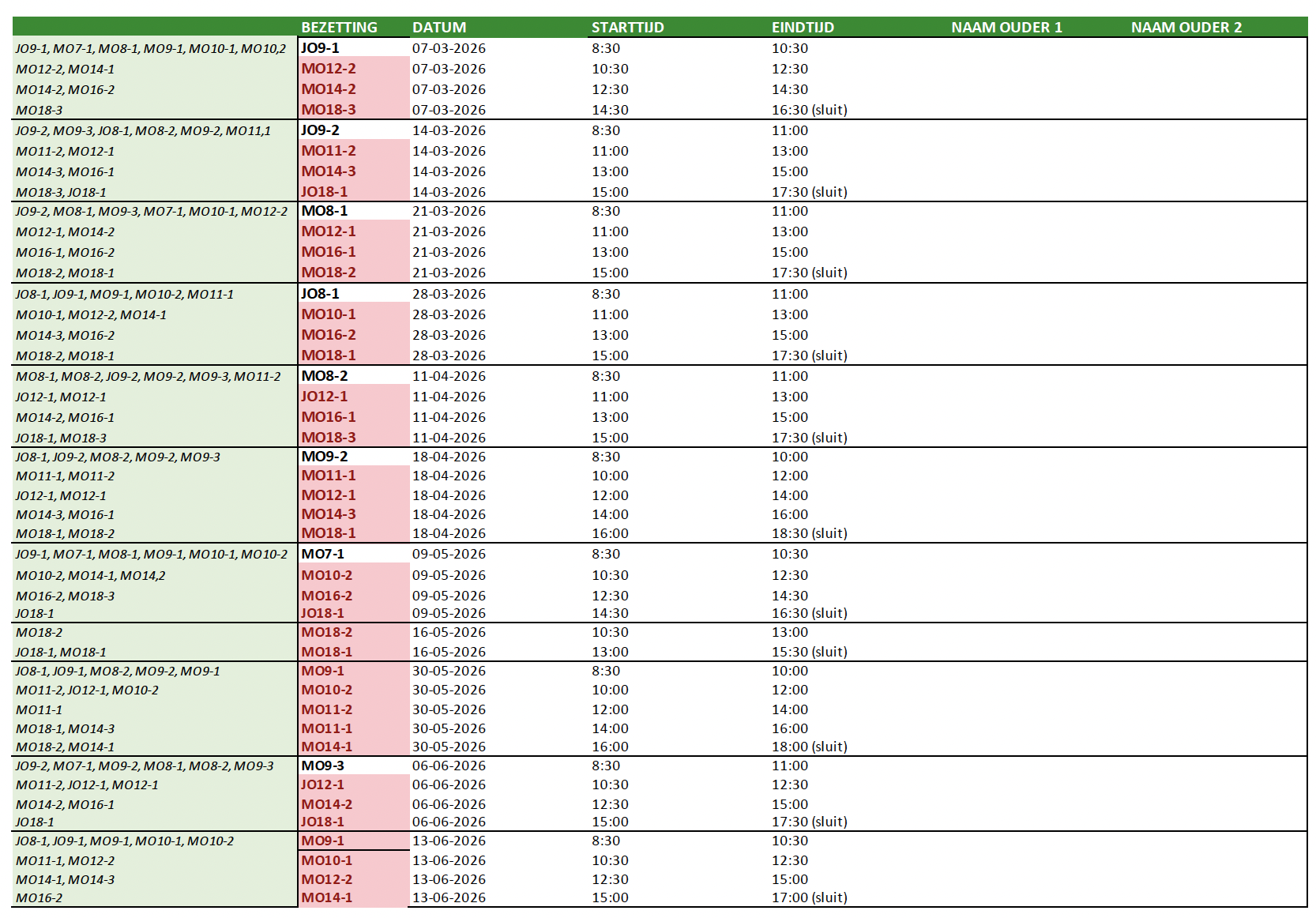 - Het barschema maken voor ouderinzet (4x per seizoen, ca. 1 uur)